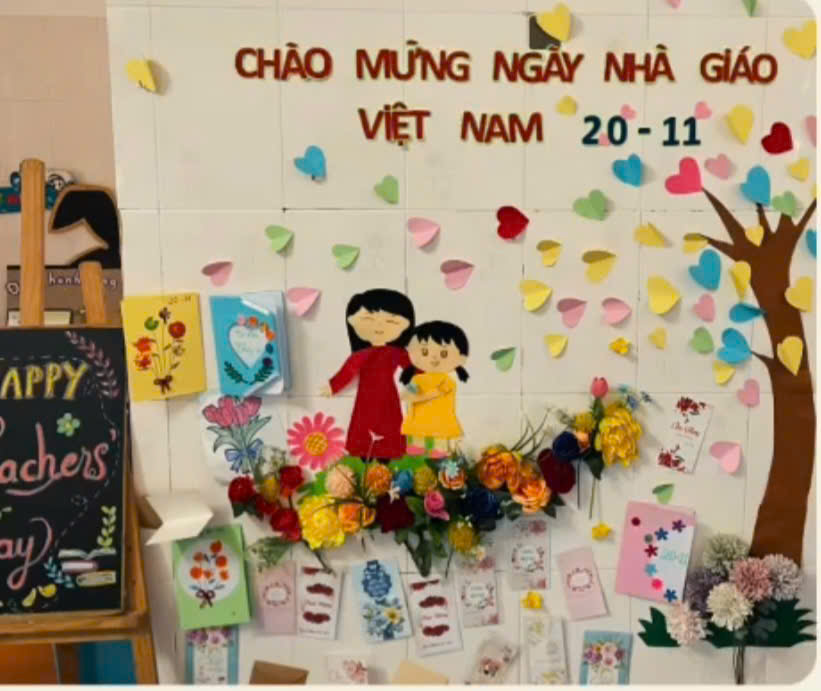 💐Từng cánh hoa được các bé tỉ mỉ trang trí, những chiếc thiệp được tô vẽ bằng tất cả tình yêu thương ngây thơ của tuổi nhỏ để gửi tặng đến các cô - những người lái đò thầm lặng.