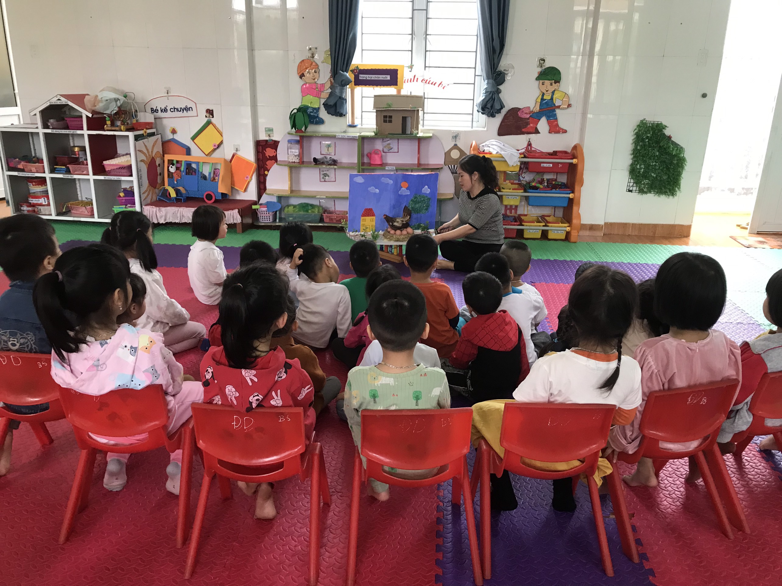Thơ là tiếng nói hồn nhiên nhất của tâm hồn, vì thế thơ rất dễ đi vào lòng người. Ngay từ thuở lọt lòng, qua lời ru ngọt ngào của mẹ, dù chưa biết thưởng thức những nhịp điệu êm dịu lúc lên bổng xuống trầm, lúc ngân nga của lời thơ, đã góp phần tạo lên một thế giới tình cảm của bé. Vì vậy thơ góp phần giáo dục thẩm mỹ và phát triển ngôn ngữ nghệ thuật cho trẻ. Qua giờ dạy trẻ đọc thuộc thơ lớp 4B3 trường mầm non Thái Sơn các con hứng thú, vui vẻ và yêu thích các hoạt động phát triển ngôn ngữ hơn.