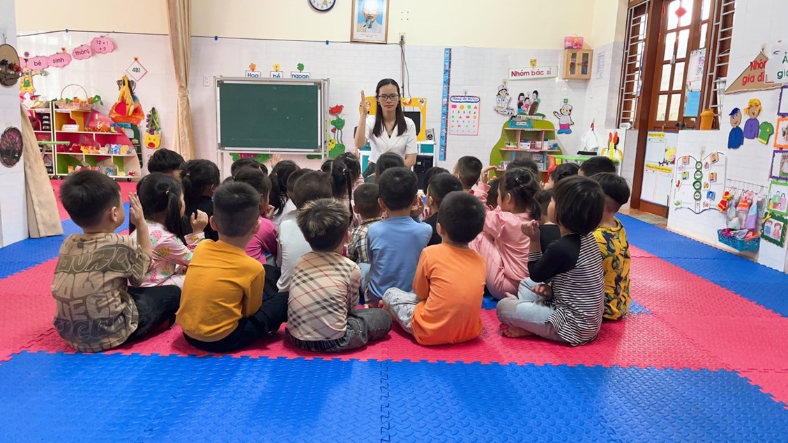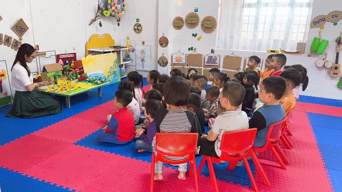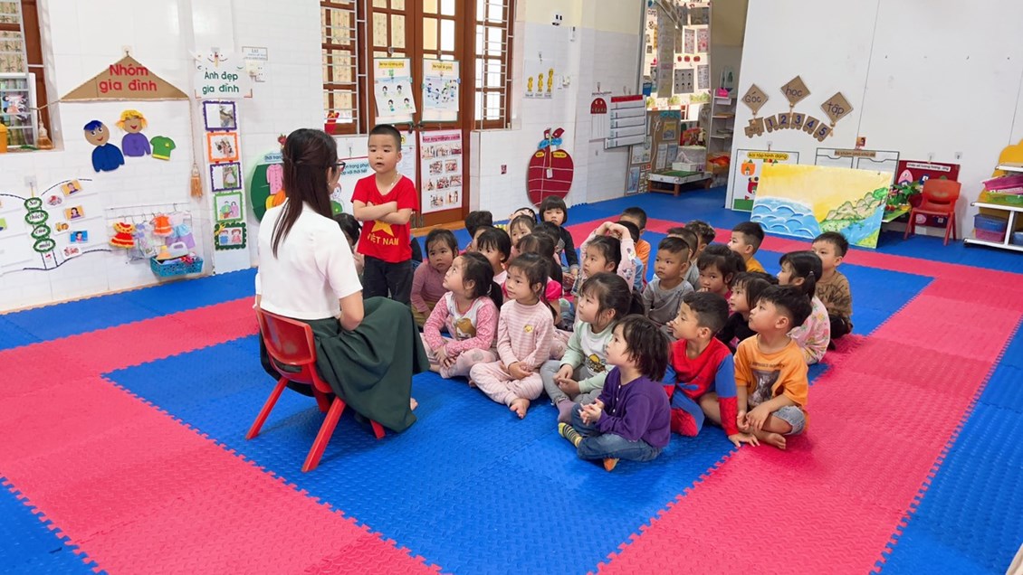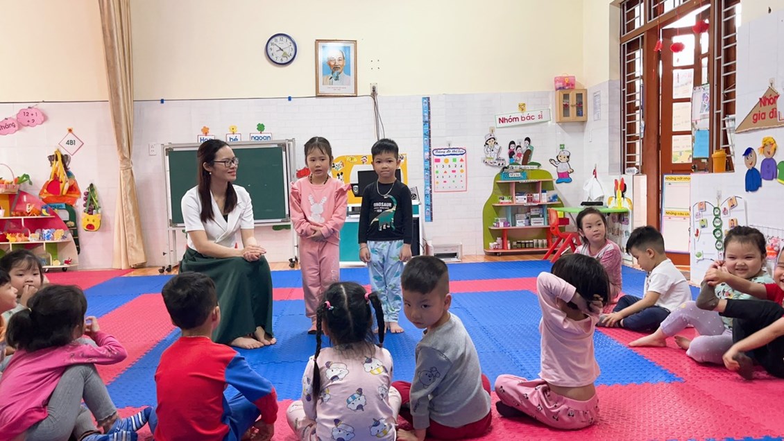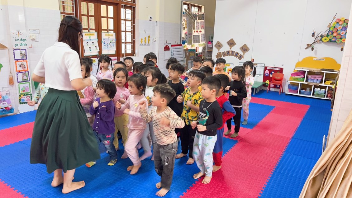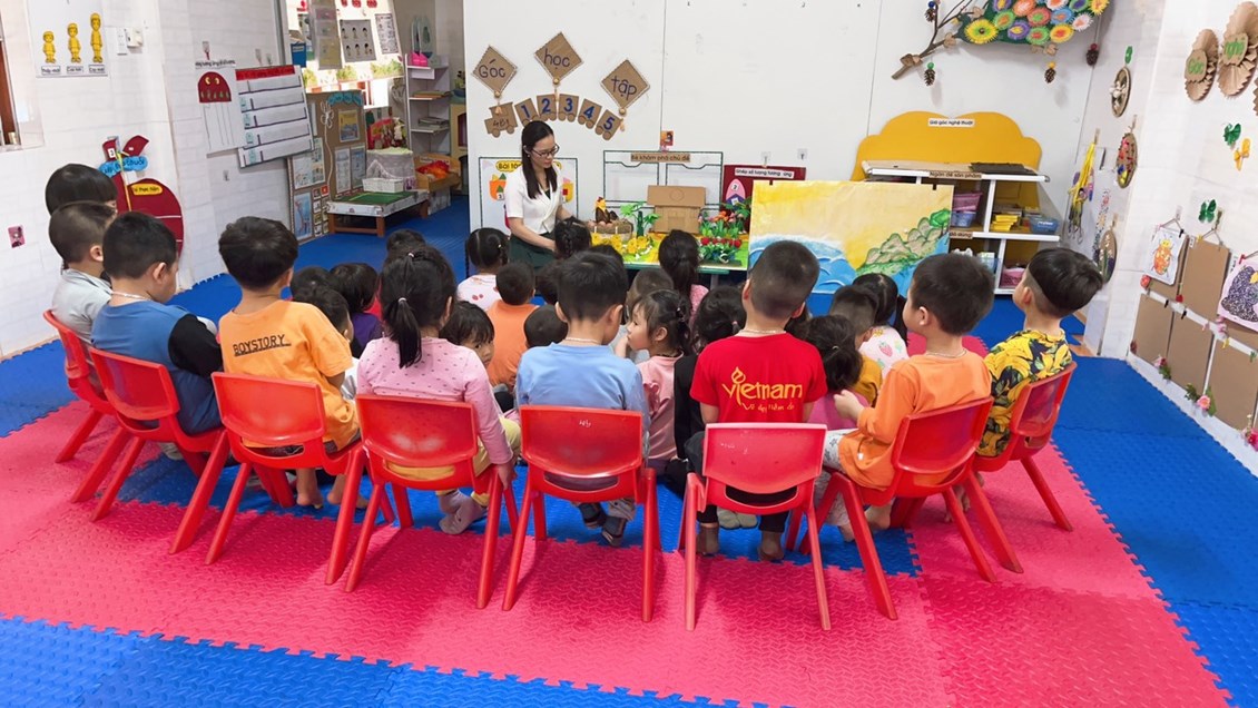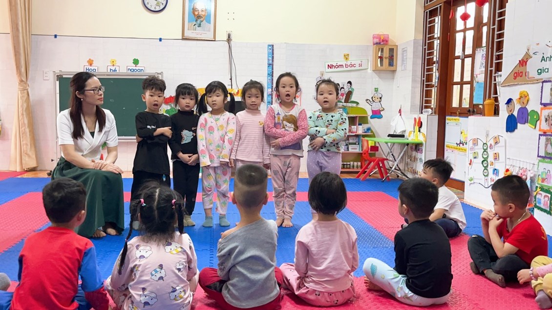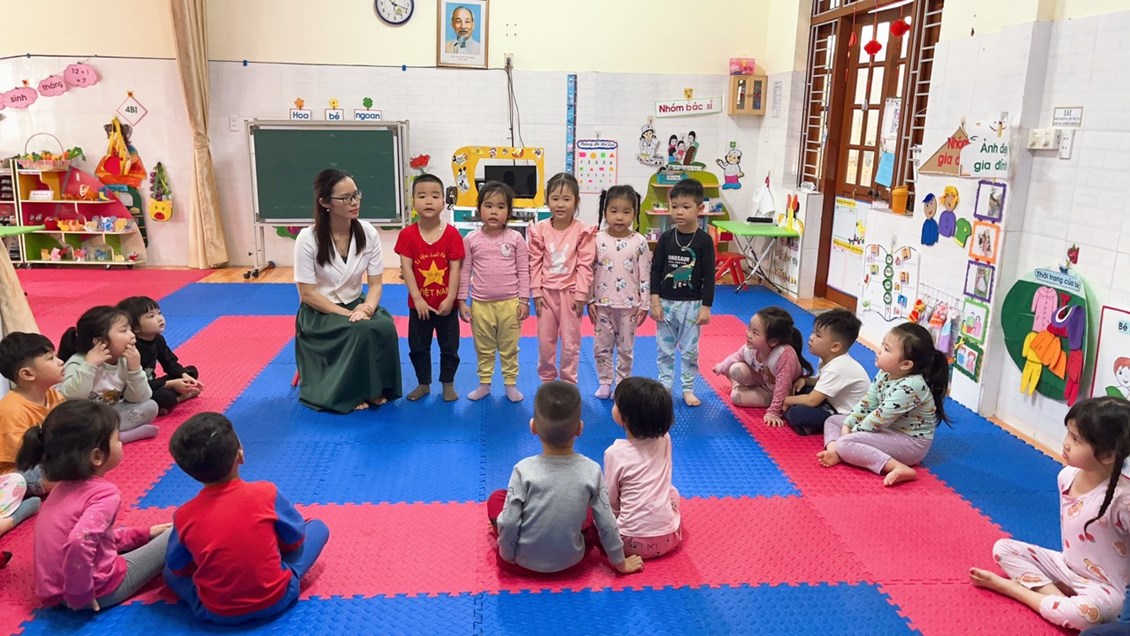 ngôn ngữ thông qua các bài thơ, các cô giáo trường MN Thái Sơn luôn cố gắng gây hứng thú để trẻ bước vào hoạt động,