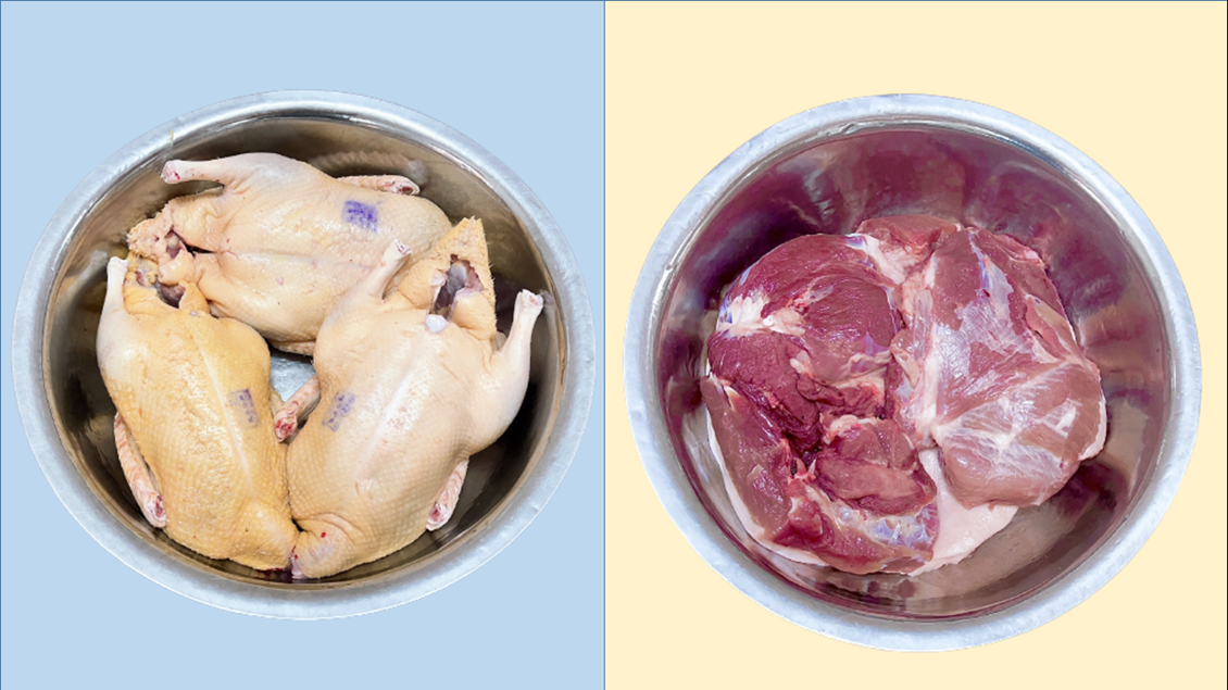 Thực phẩm tươi sạch, đầy đủ hóa đơn, dấu kiểm định.