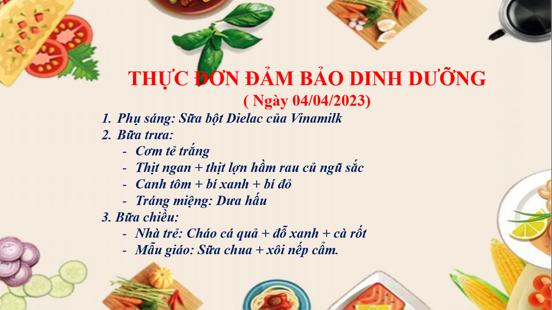 Sau đây là một số hình ảnh thực đơn ngày 04/04/2023.