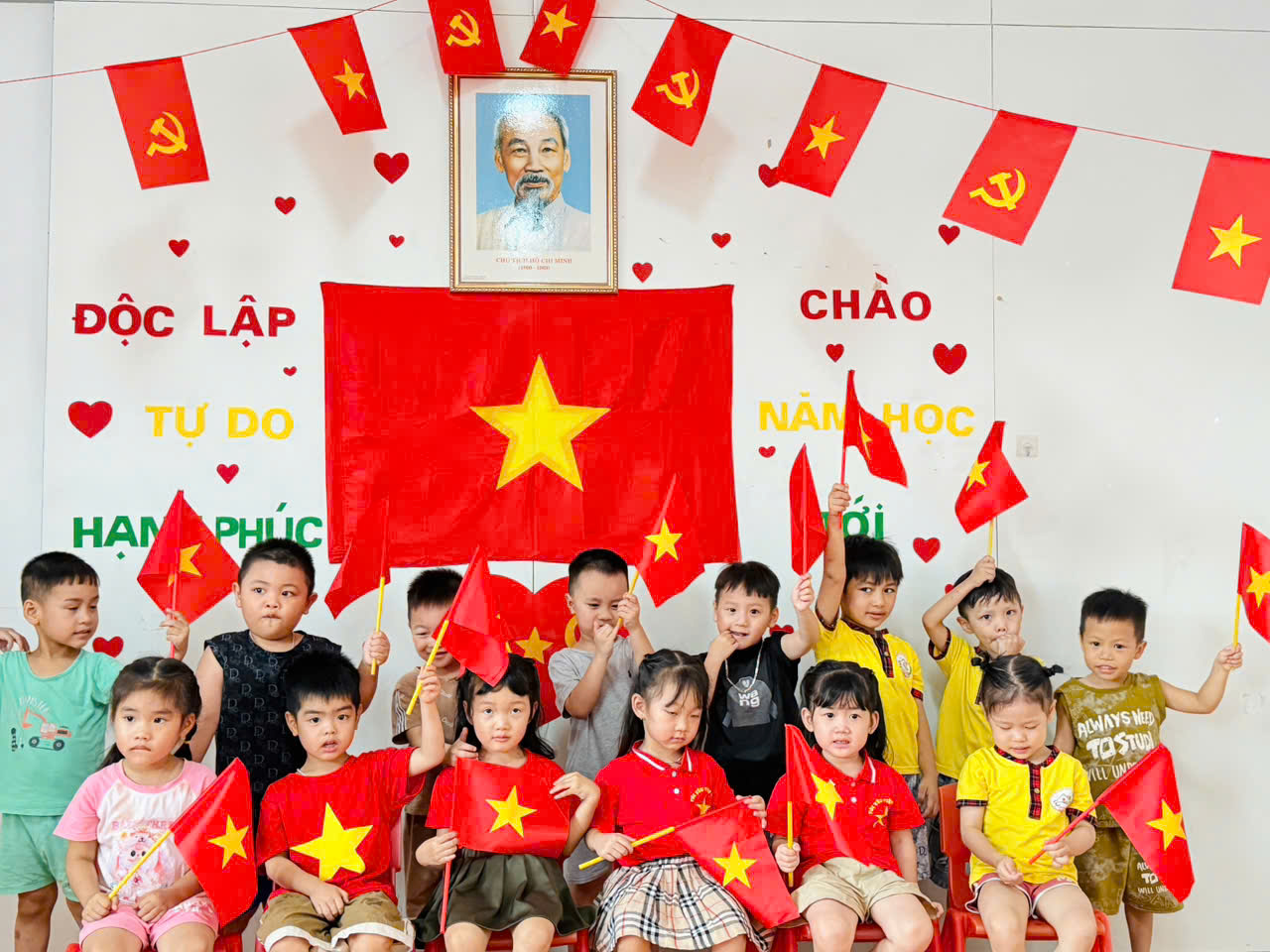 Trong không khí vui tươi của cả nước đang tưng bừng chuẩn bị cho sự kiện lớn của dân tộc Kỉ niệm 80 năm Cách mạng tháng 8 và Quốc khánh 2/9 (1945-2025). Trường Mầm non Thái Sơn đã tích cực chuẩn bị cho ngày Quốc khánh 2/9/2025. Nhà trường trang trí khuôn viên rực rỡ với nhiều cờ hoa và khẩu hiệu ý nghĩa. Các biển chào mừng được treo trang trọng, tạo không khí vui tươi, phấn khởi. Các lớp học được giáo viên và học sinh cùng nhau trang trí đẹp mắt. Nhà trường tổ chức cho trẻ tập các tiết mục múa hát ca ngợi quê hương, đất nước. Tiếng hát của các con mang đến niềm vui và sự tự hào dân tộc. Các bé còn được xem video tư liệu về ngày 2/9 lịch sử của dân tộc. Qua đó, trẻ thêm hiểu biết về ngày lễ trọng đại của đất nước Việt Nam. Hoạt động giúp các con hình thành tình yêu Tổ quốc ngay từ tuổi thơ. Toàn thể nhà trường náo nức hướng về ngày Quốc khánh trong niềm hân hoan.