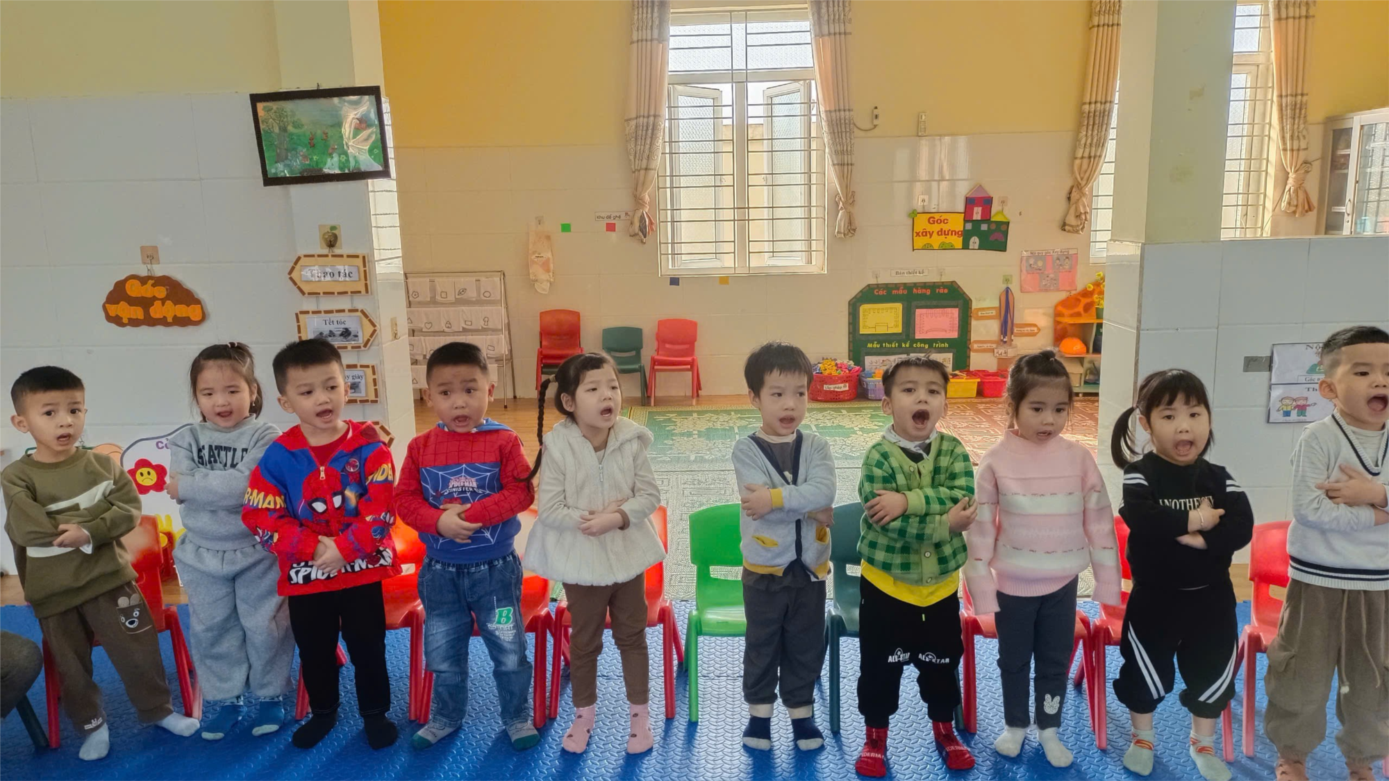 Dưới đây là những hình ảnh đáng yêu của cô và trẻ trong giờ đọc thơ “Tết đang vào nhà”